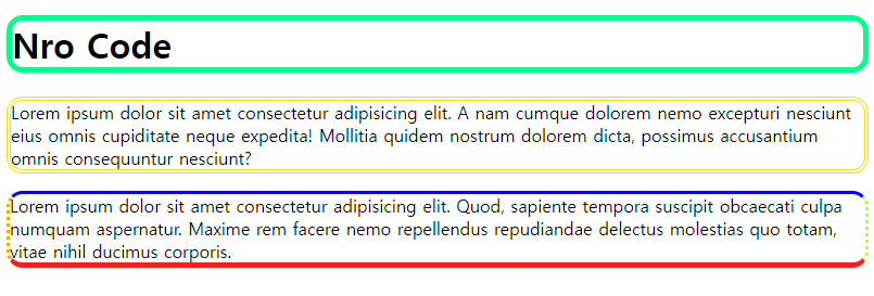 <p id="border2">Lorem ipsum dolor sit amet consectetur adipisicing elit. A nam cumque dolorem nemo excepturi nesciunt eius omnis cupiditate neque expedita! Mollitia quidem nostrum dolorem dicta, possimus accusantium omnis consequuntur nesciunt?</p>